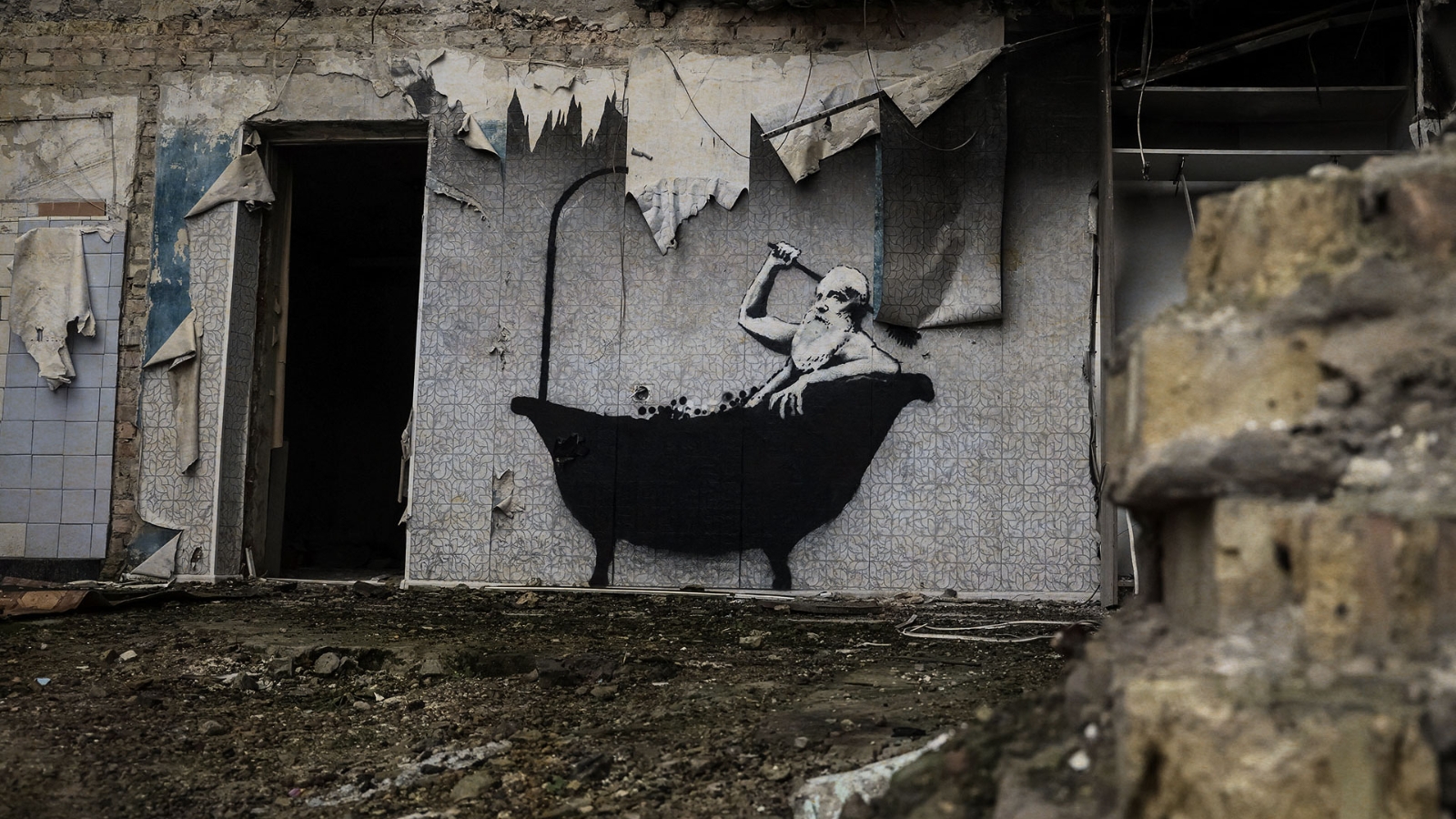 In late 2022, Banksy travelled to Ukraine and painted murals on buildings shelled by Russian forces. One, a bearded man scrubbing himself in a bathtub on a blown-out wall in the village of Horenka, drew the world’s attention and set off a three-year investigation by Reuters, published on 13 March 2026.