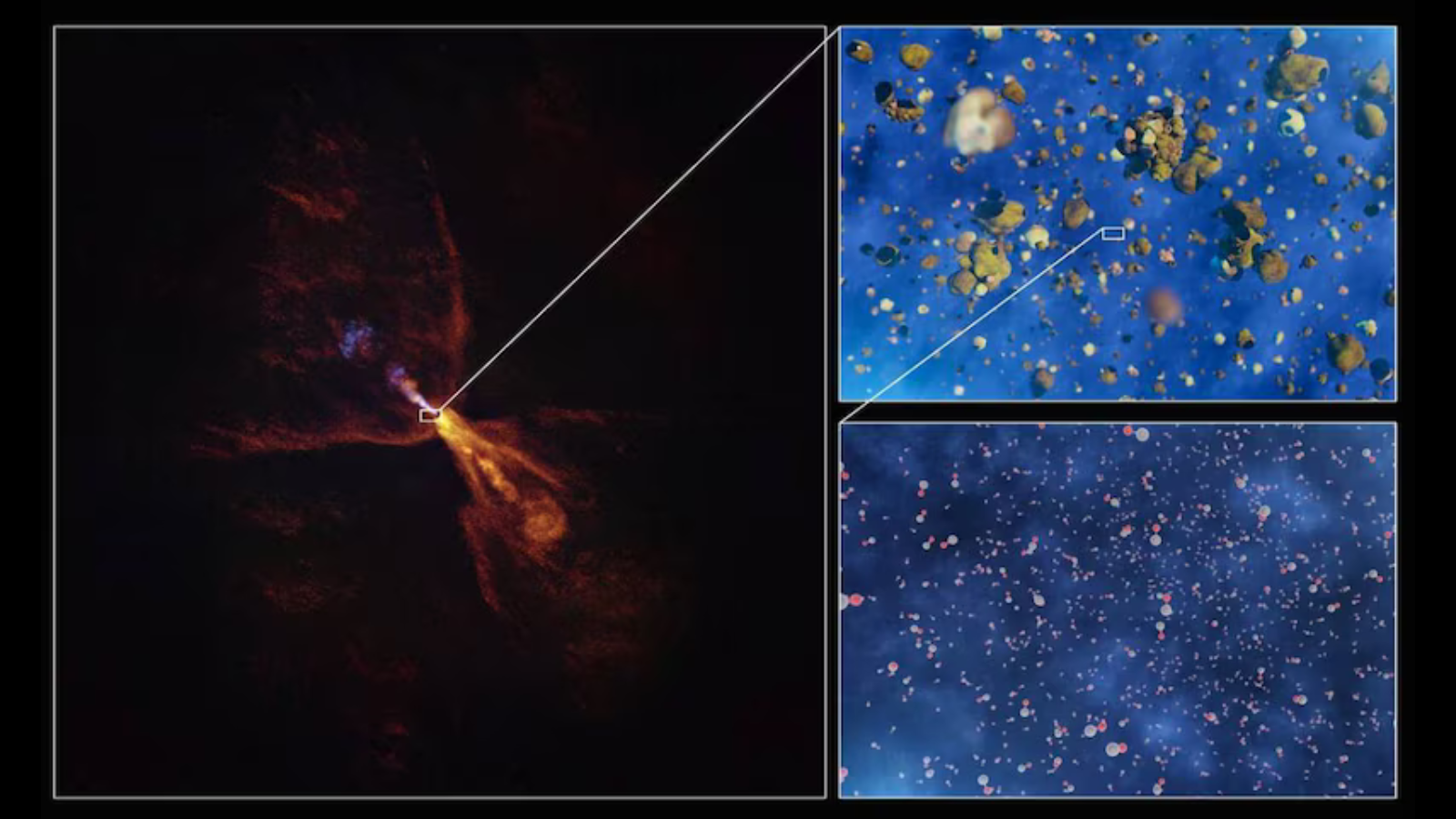 The key molecule identified was silicon monoxide (SiO), a mineral also found in the early rocks of Earth and other planets. These minerals, initially in gas form, are now crystallising, marking the first solid step in planet formation.