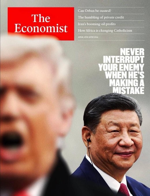 The cover of this week’s Economist shows Donald Trump blurred in the foreground, relegated to soft focus, with Xi Jinping behind him in sharp relief, smiling. The quote is Napoleon’s.