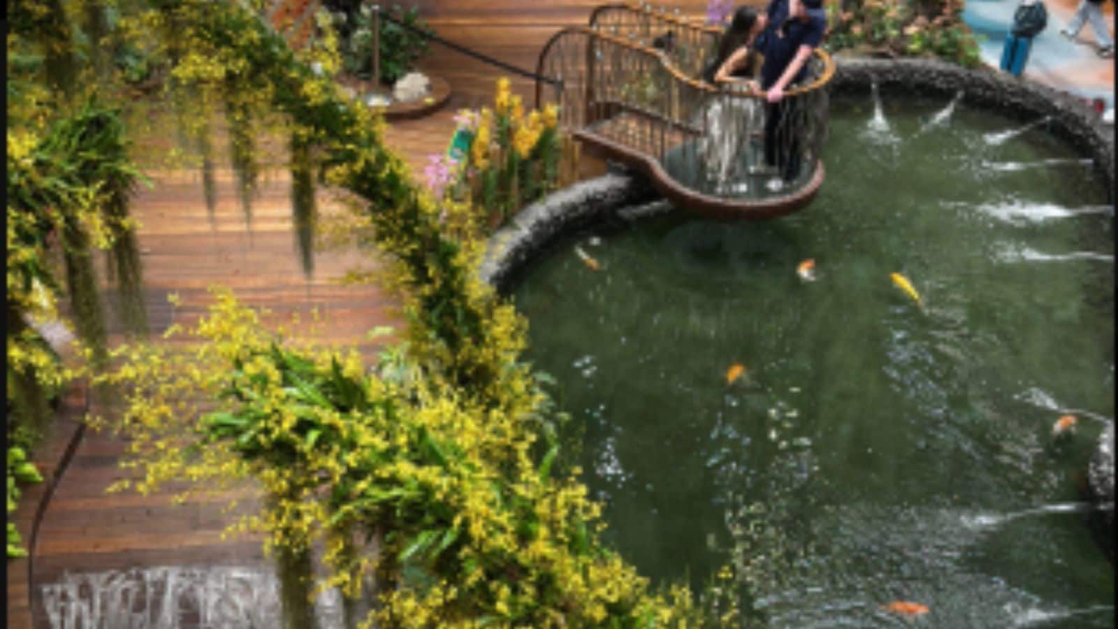 There's even an indoor glass fishpond you can walk over, complete with a digital roof display that mirrors the weather outside. (Image: X)