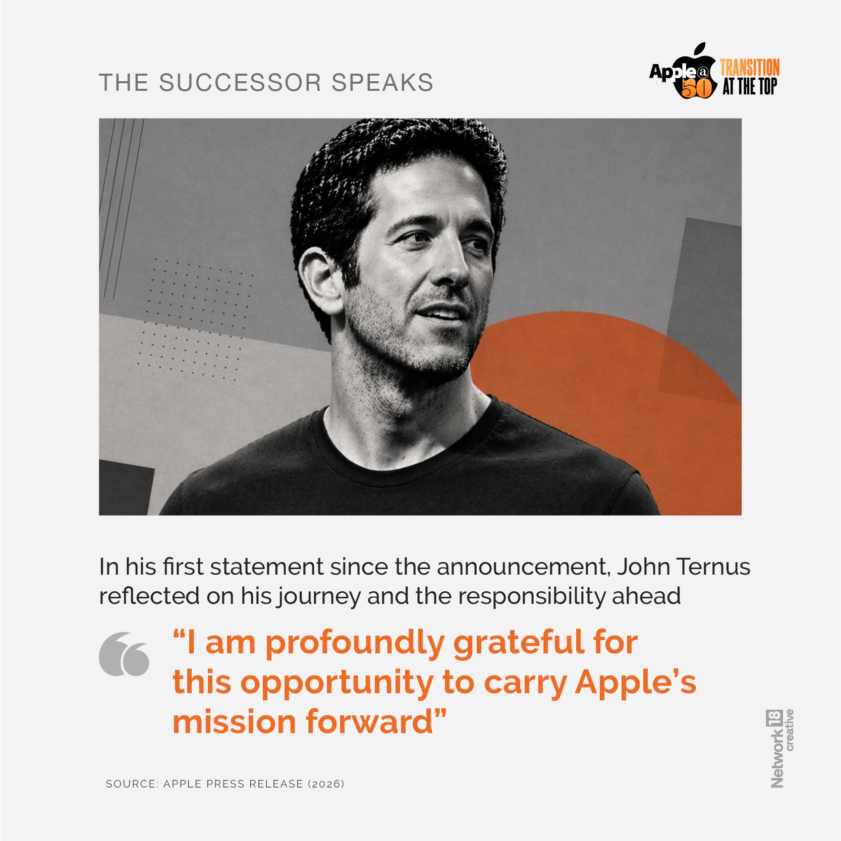 Ternus said in Apple's announcement that he was "humbled to step into this role, and I promise to lead with the values and vision that have come to define this special place for half a century.”